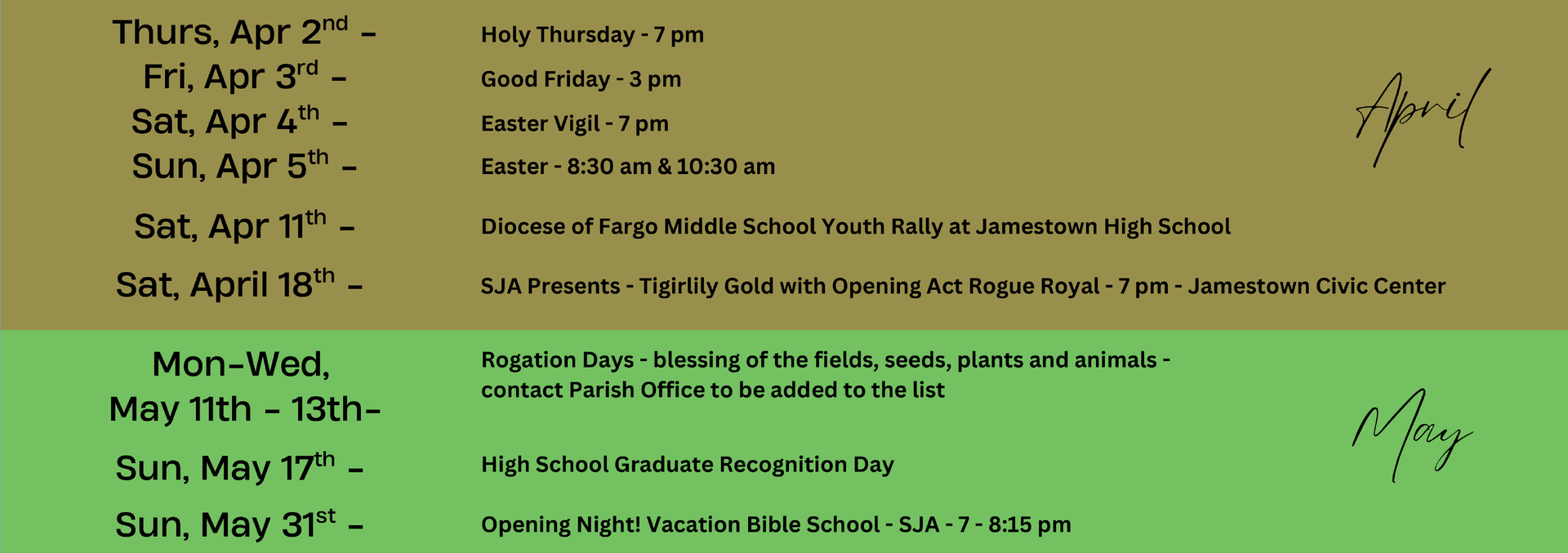 Youth Ministry Calendar